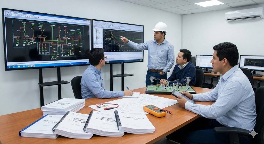Cursos in-house para empresas eléctricas del Ecuador, seminarios en energías renovables y sistemas eléctricos de potencia, formación en tarifas eléctricas, calidad de energía y eficiencia energética, orientados al fortalecimiento de capacidades técnicas y profesionales.